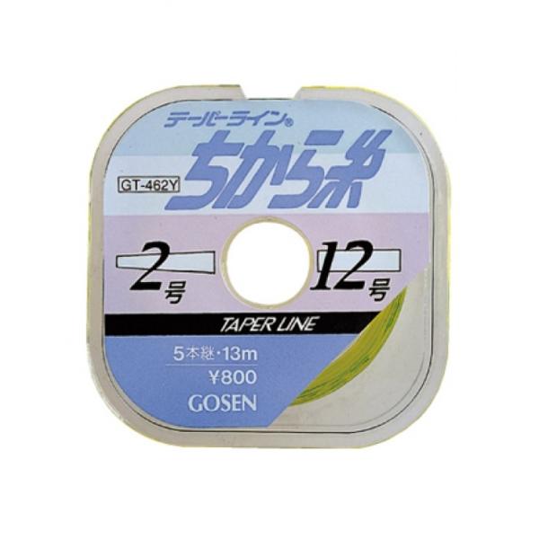 力糸はテーパー形状となっているものがほとんどで、細いほうが2~5号、太いほうが8~16号のものを選びましょう。