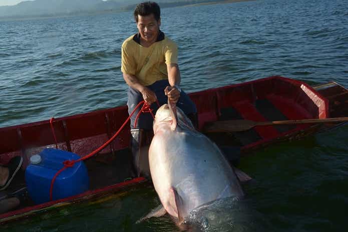 (タイ国水産局による厳格な規制下で正当に漁獲されたメコンオオナマズ)
