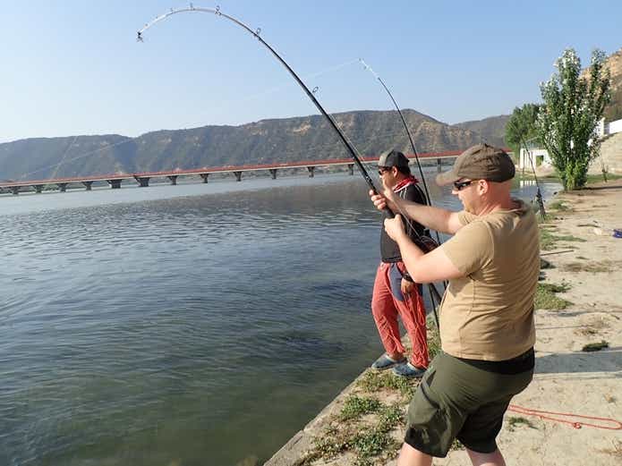 美味しいもの食べて、気長にオオナマズが掛かるのを待つ。他の魚が釣りたければボートで遠出!