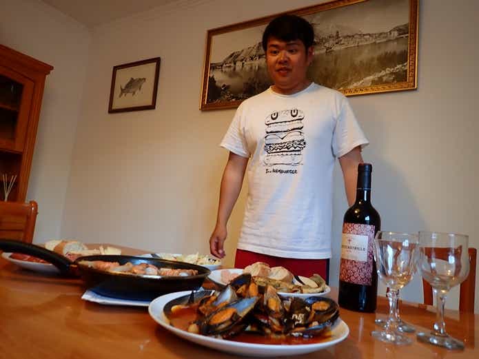 釣ったパーチや街で買ったムール貝を使って、スペイン料理を自作してみました。
