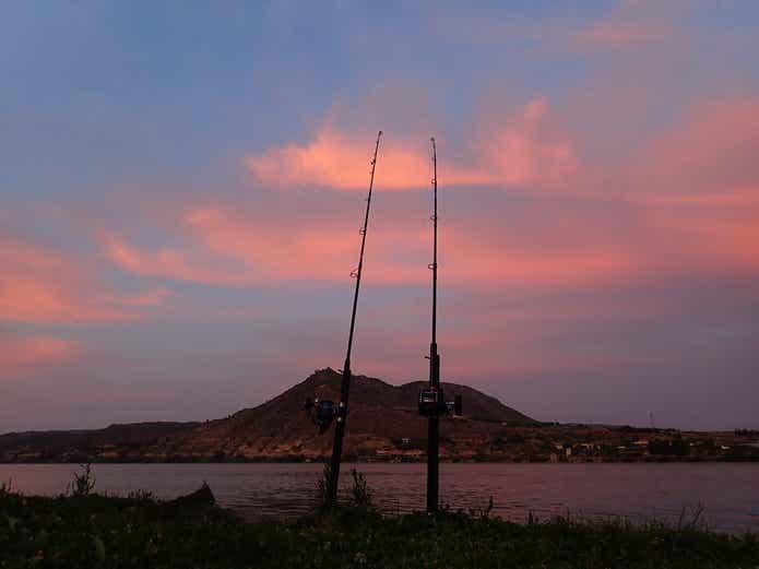 朝6時、日の出とともにオオナマズ釣り開始です!