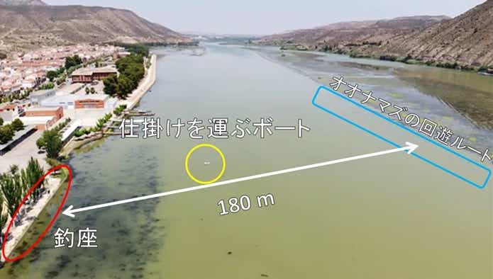 オオナマズが回遊するという実績ルートに船で仕掛けを運び、とにかく待つ。