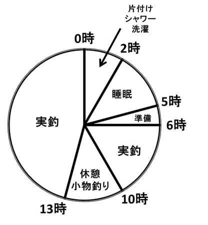 因みに24時まで釣りをすると……毎日こんなスケジュールになります。