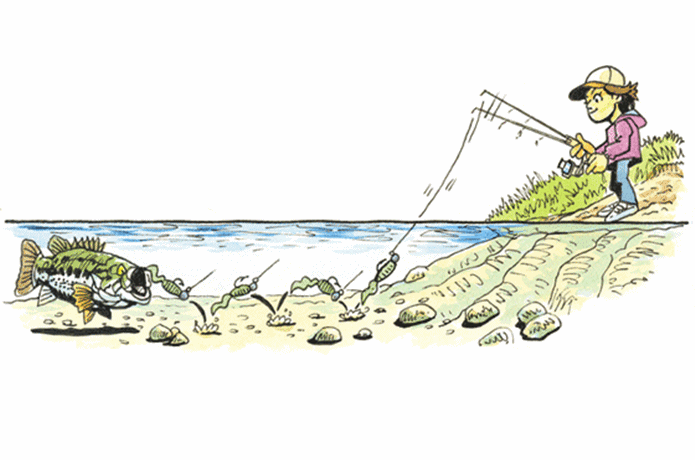ナチュラルかつスローに誘うライトキャロライナリグ。ノーシンカーリグが好きな筆者も、ボトム付近をナチュラルに探りたい時に重宝しています。