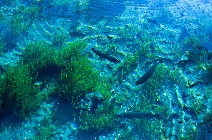 筆者の父がブルーバックレインボーを釣ったのは、カルデラ湖ではなくダム湖でしたが、そこは青く澄んだ湖で、ブルーバックレインボーが釣れると有名の釣り場です。