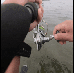 糸ふけをとってからのフォールでラインテンションがかかるようになったら、次のリフトアップ操作に入ります。
