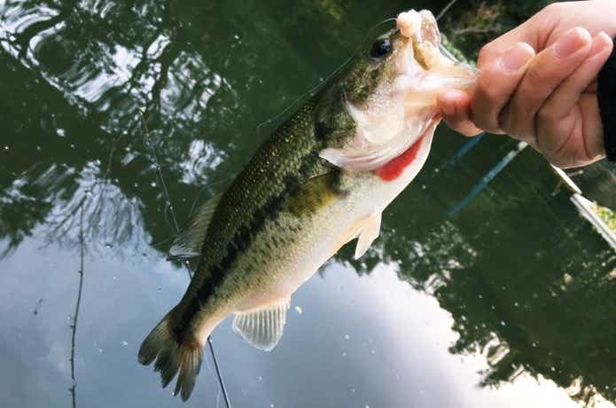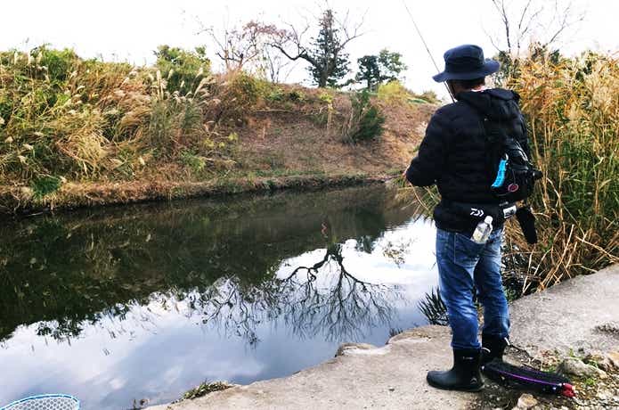 静かだった川池にも急に魚影が現れ、ザワザワし始めました。筆者はここぞとばかりにルアーを投げ入れます。
