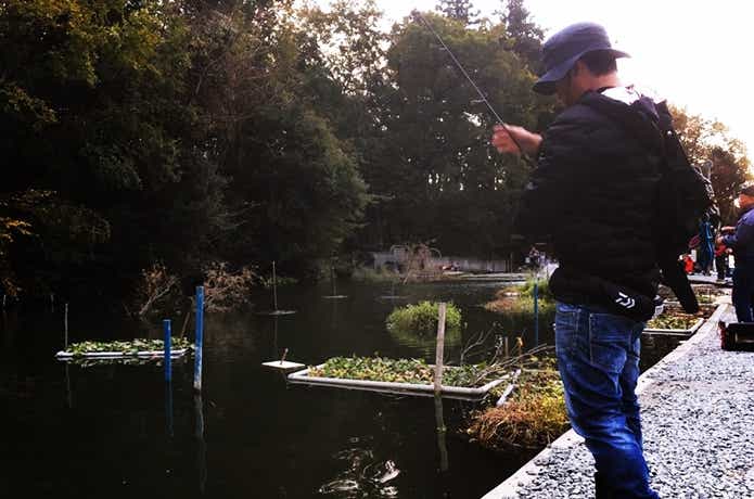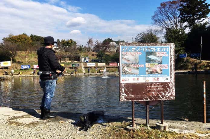 まずはメインポンドに入って、トラウトを狙いましょう。