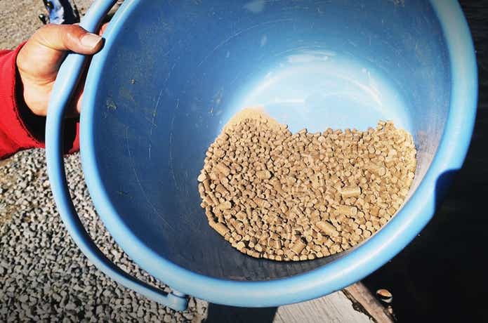 すると、ペレット(エサ)を携えた養田さんが登場!