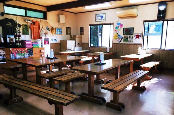 ゲストハウス(休憩所)は、ご飯を食べたりコーヒーを飲んだり、釣れそうなルアーを選んで購入したり、ゆっくり過ごせるスペースになっています。京風うどんや丼物などの食事サービスも。