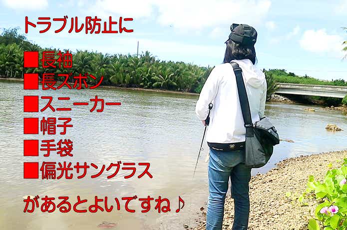 安全そうに見える場所でもなるべく長袖、長ズボン、スニーカーをオススメします。