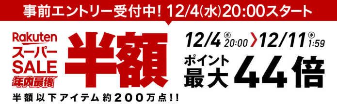 楽天市場スーパーSALEは12月11日(水)01:59まで