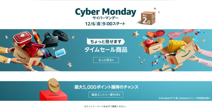 Amazonサイバーマンデーセールが開催