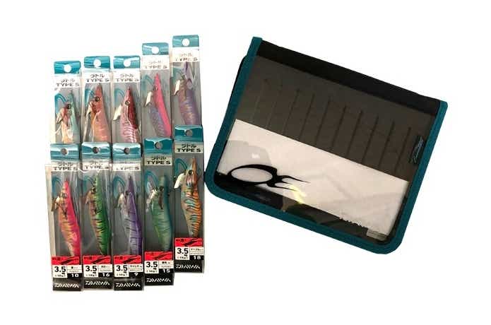 ダイワやヤマシタ、デュエルやファイブスターなどのエギが9つセットになって5,500円(税込)の福袋。