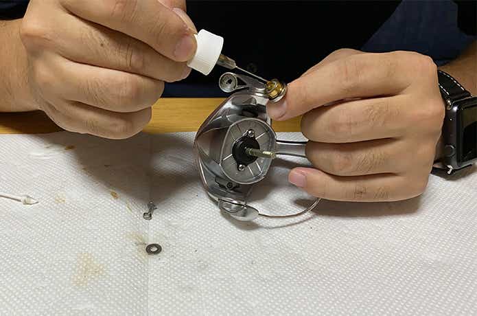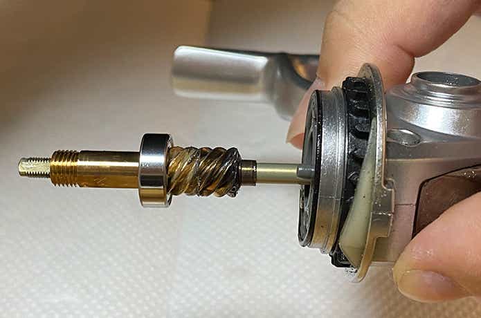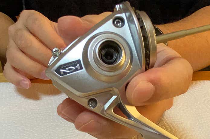 スプールやハンドル、ラインローラーといった外部パーツは、以前紹介したメンテナンスとやるべきことは同じです。