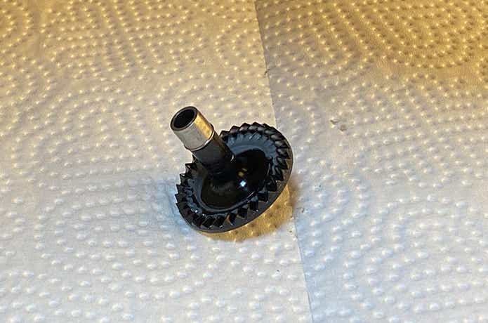 ワンウェイクラッチを外すと、ピニオンギアがお目見えしました。