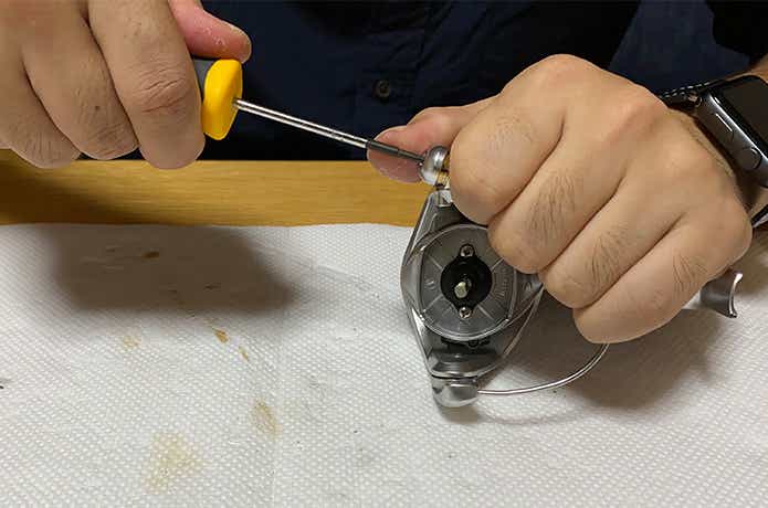 この際、シマノ製リールの多くは、精密六角ドライバーの0.9ミリが必要です。