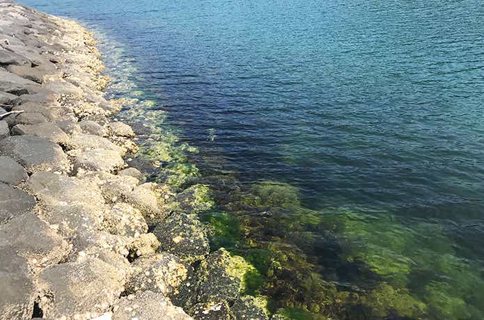 狙うポイントは、貝や海藻などがたくさん生えていて魚の隠れ場が多そうな場所。