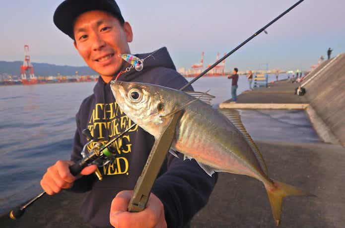 一般的なおかっぱりのアジングよりも、重たいジグヘッドを使うことと、釣れるアジのサイズが大きいことが特徴です。