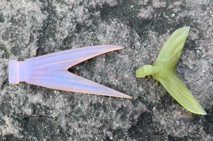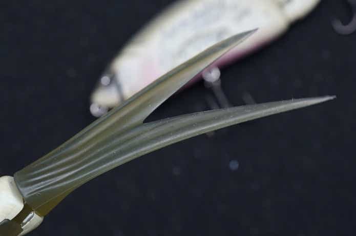 オプションパーツのVテールってめちゃくちゃ魚が反応するんですよ。じつは二つに分かれたテールは、上下で微妙に長さと厚さを変えています。