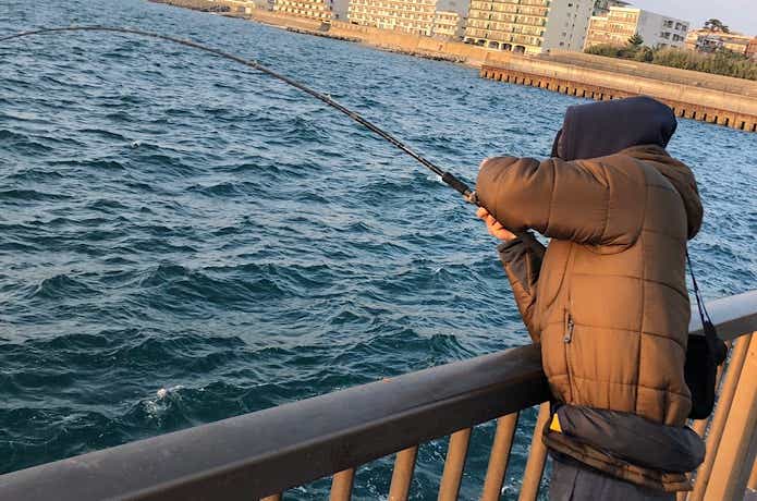 釣り方は、エサを付けた仕掛けを岸壁際に落として待つだけです。