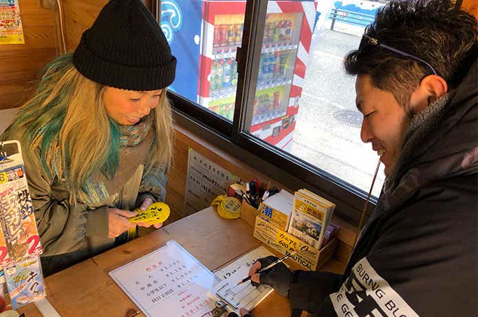 まずは受付に立ち寄り、乗船名簿に名前や希望する帰港時間を書きましょう。