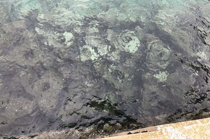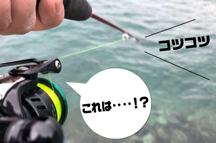 足元にある穴に仕掛けを落としてみると、カサゴとは違うコツコツとしたアタリが!