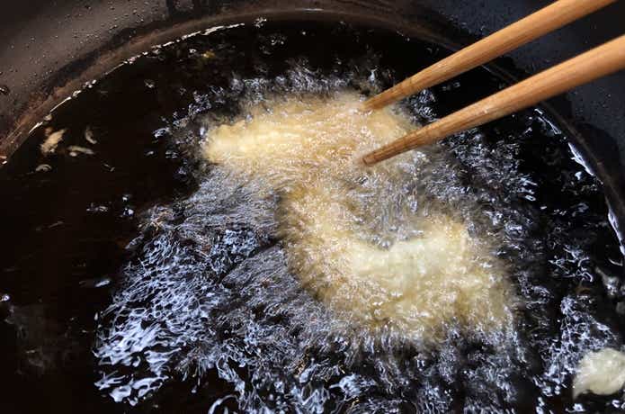 あとは普段通り衣をつけてカラッと揚げれば高級江戸前天ぷらの完成!