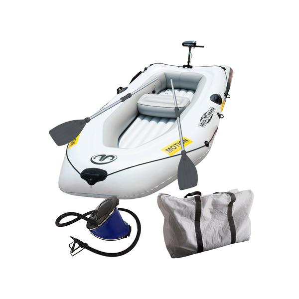 手漕ぎタイプのゴムボート。最大4名まで乗ることができ、モーターマウント付きなので別売りのエレキモーターを搭載することも可能。合計3つの気室で高い安定性を実現しています。