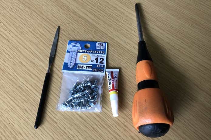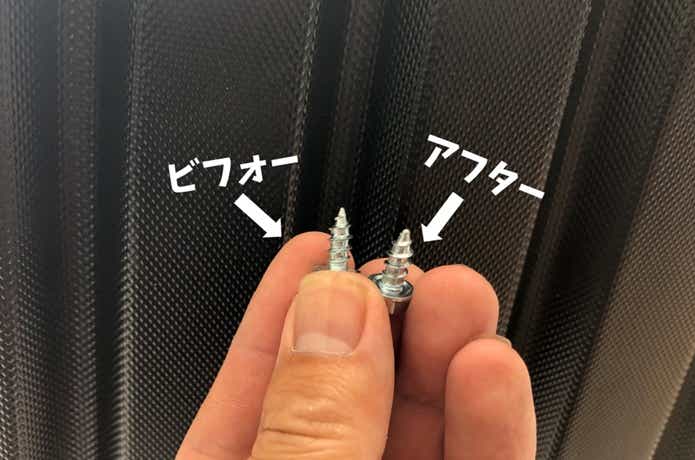 万が一ビスが突き出て怪我をしないよう金属やすりで尖ったビス先を丸くします。