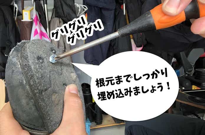 購入前はソールの厚みを測り、ネジ長が“ソールより短いもの”をチョイスしましょう。