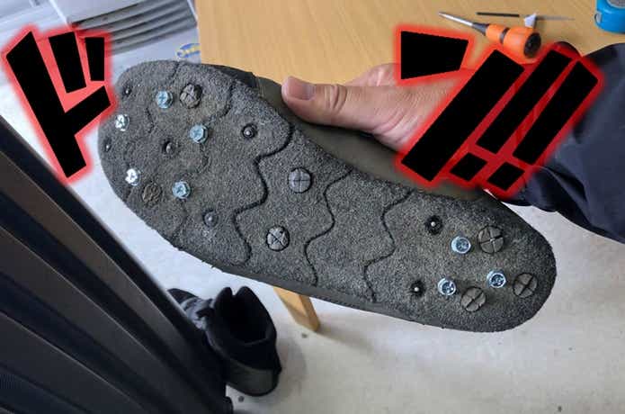 スタッドカスタムで一時的にグリップ力はアップするものの限界はあり、靴底は使えば使うほど擦り減る消耗品です。