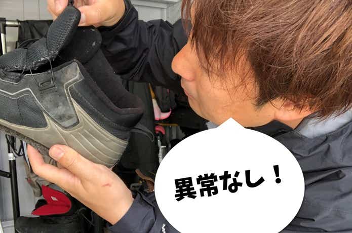 履く前はインソールを外し、ビス飛び出しがないかチェックしましょう。