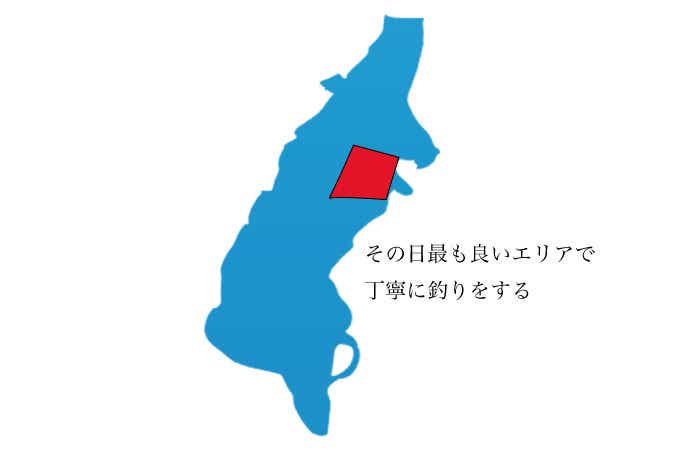 2段階で絞った最も良いピンスポットで再度釣りをします。ここで上手く絞り込めていれば良い釣果に巡り会うことが出来るでしょう。