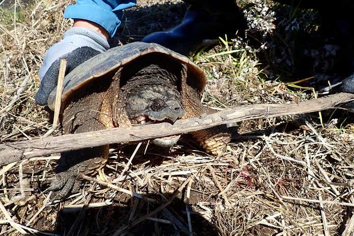 普段からカメやヘビを捕まえたり、飼育していない人にはカミツキガメの捕獲はやめていただきたいと言うのが僕の本音です。