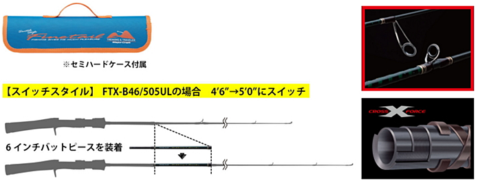 今回のランキングでは、4フィート6インチから5フィートにスイッチすることができるスピニングモデルFTX-B46/505ULが特に数を伸ばしました。