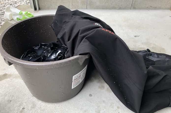 長い期間持ち堪えてくれたレインウェア。最大限の感謝をしながら洗っていきます。