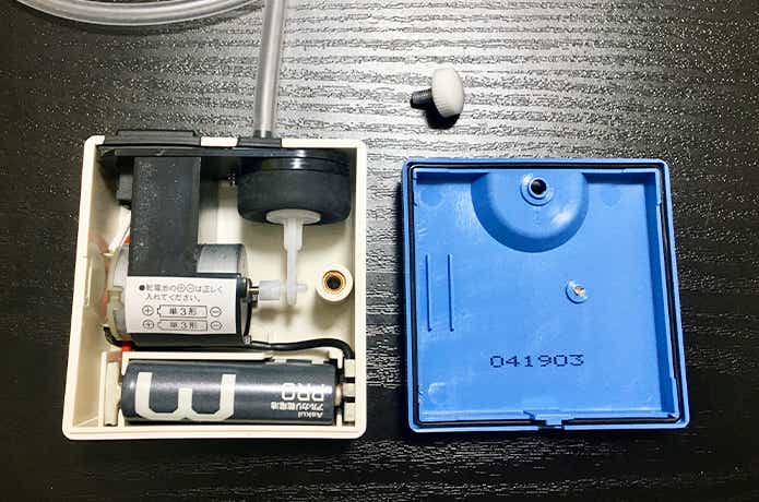 釣った魚、採ってきた生物などを持ち運ぶ時際や、停電時など酸素供給が一時的に失われる状況を想定して作られた電池式のエアーポンプです。