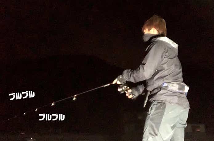 常夜灯が効いた防波堤。中央アイセッティングで足元をスローただ巻き。