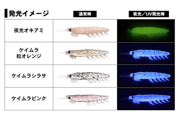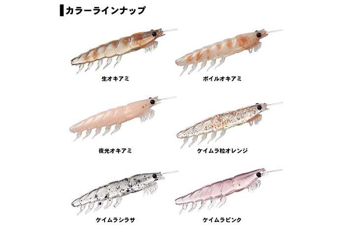 このワームの模様には、オキアミの写真プリントが使われており、赤い模様の入り具合がそっくりですね。