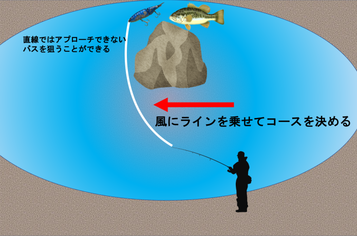 例えば軽いPEラインで風に乗せてやることで、引きにくいコースを攻めることもできます