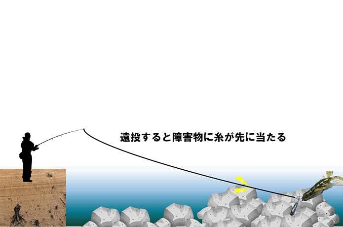 フロロカーボンラインは水に沈んでしまいます。そのため、遠投するとルアーより先にラインが沈んでしまいゴミや障害物を拾ってしまったり、擦れてラインを痛めてしまうことも。