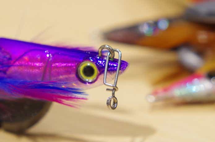 また、メタルバイブといったルアーアイが鋭利なルアーは、直接ラインアイにラインを結ぶと、ラインが傷ついてしまう事があります。