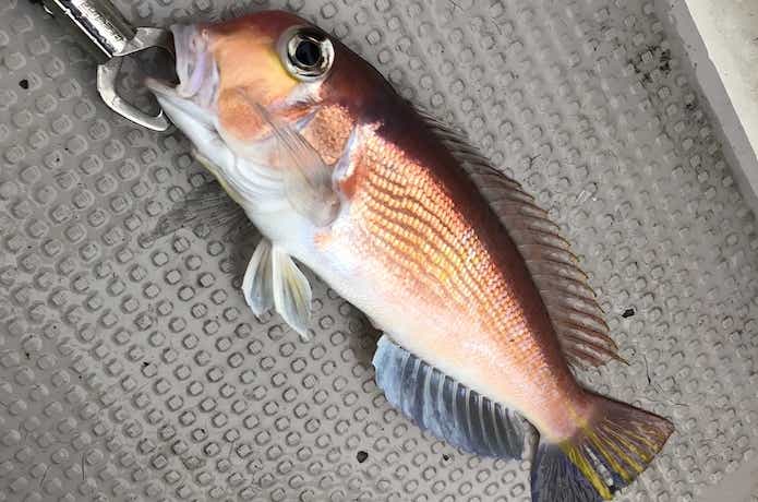 高級魚のアマダイも胴付き仕掛けで狙えるターゲットです。オキアミやホタルイカをエサにして狙います。