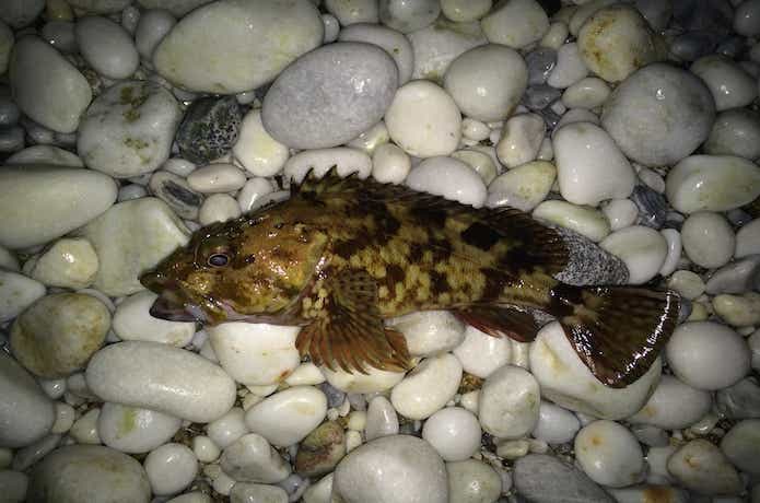 カサゴと比較すると浮いている場合も多いため、底以外で釣れることがあります。