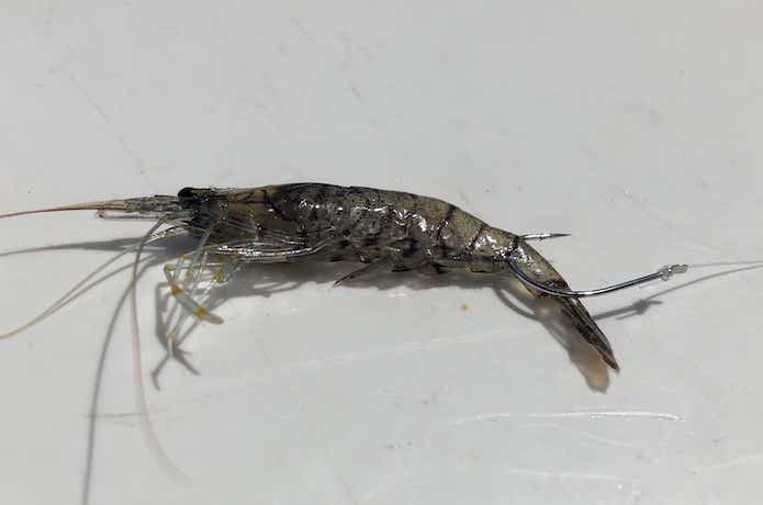 テトラの際や堤防の壁際を青イソメやシラサエビで探ると釣れます。