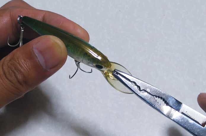 トゥルーチューンとはアイの角度を調整し、ルアーが真っ直ぐ泳ぐようにする方法。