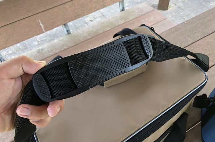 荷重を分散する滑りにくい肩掛けパッドが採用されています。