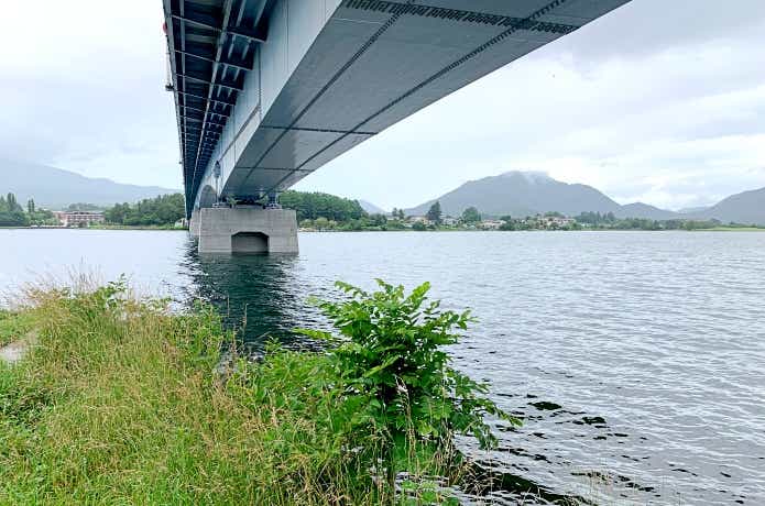 ロイヤルワンドを北へ歩いていくと河口湖大橋の南側へアクセスすることができます。ここも深くなっており回遊などの条件が揃っていそうです。
