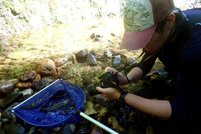 小型サンショウウオの採集を専門とする彼はあまり特殊イワナに対して興味はなさそうですが、サンショウウオを探しながらでも良ければと同行してくれました。